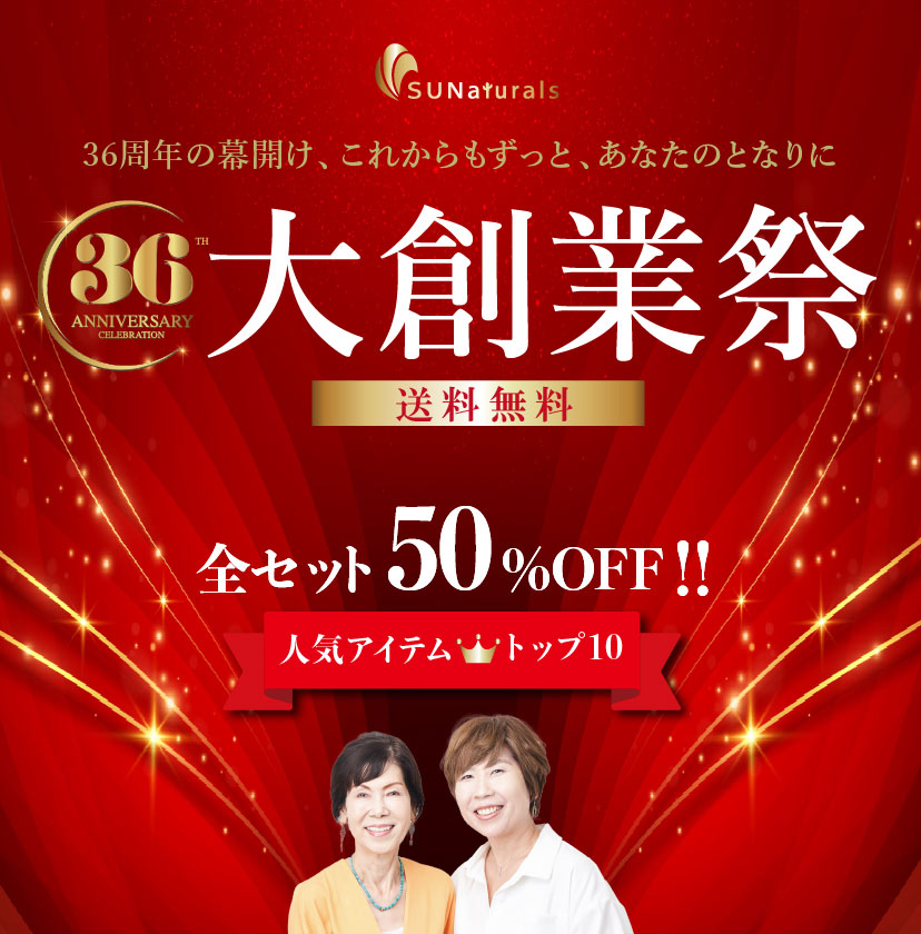 おかげさまでこの2月に36年目を迎えるサンナチュラルズより、これまでご愛用くださった皆さまへ、心からの感謝の気持ちをお届けいたします。