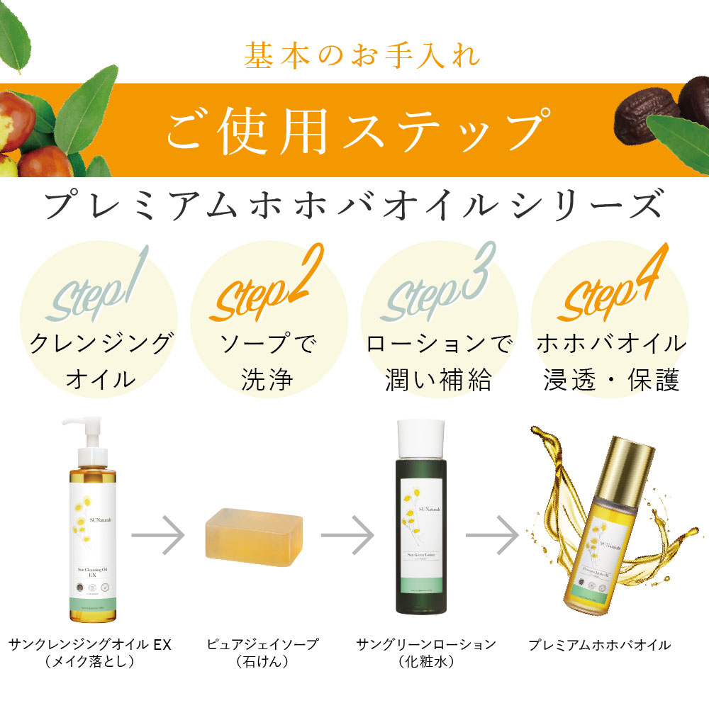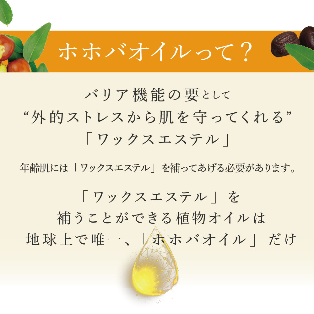 1本にプレミアムホホバオイルを限界まで贅沢に配合。さらに「軽い使用感」を実現しました。