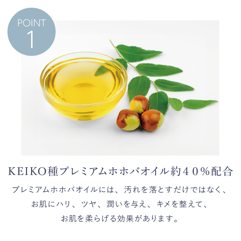 KEIKO種プレミアムホホバオイルを限界まで高配合。「洗浄しながらスキンケア」を実現した贅沢なクレンジングオイルです。