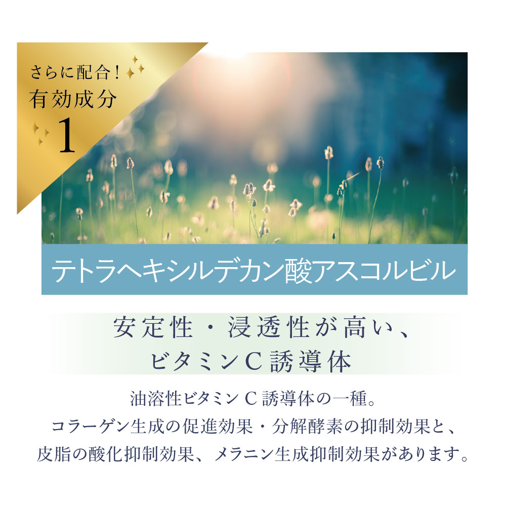 | 【成分】 | 成分:水、ペンチレングリコール、ホホバ種子油、グリセリン、BG、バクチオール、ヒポファエラムノイデス果実油、マカデミア種子油、ホホバ葉エキス、テトラヘキシルデカン酸アスコルビル、パルミチン酸レチノール、コメヌカスフィンゴ糖脂質、加水分解酵母エキス、アロエベラ葉エキス、クズ根エキス、クロレラエキス、カンゾウ根エキス、グリチルリチン酸2K、アラントイン、ビサボロール、ピーナッツ油、レモングラス葉油、コーン油、トコフェロール、(クロロフィリン/銅)複合体、水添レシチン、水添リゾレシチン、アルギニン、カルボマー、フェノキシエタノール |