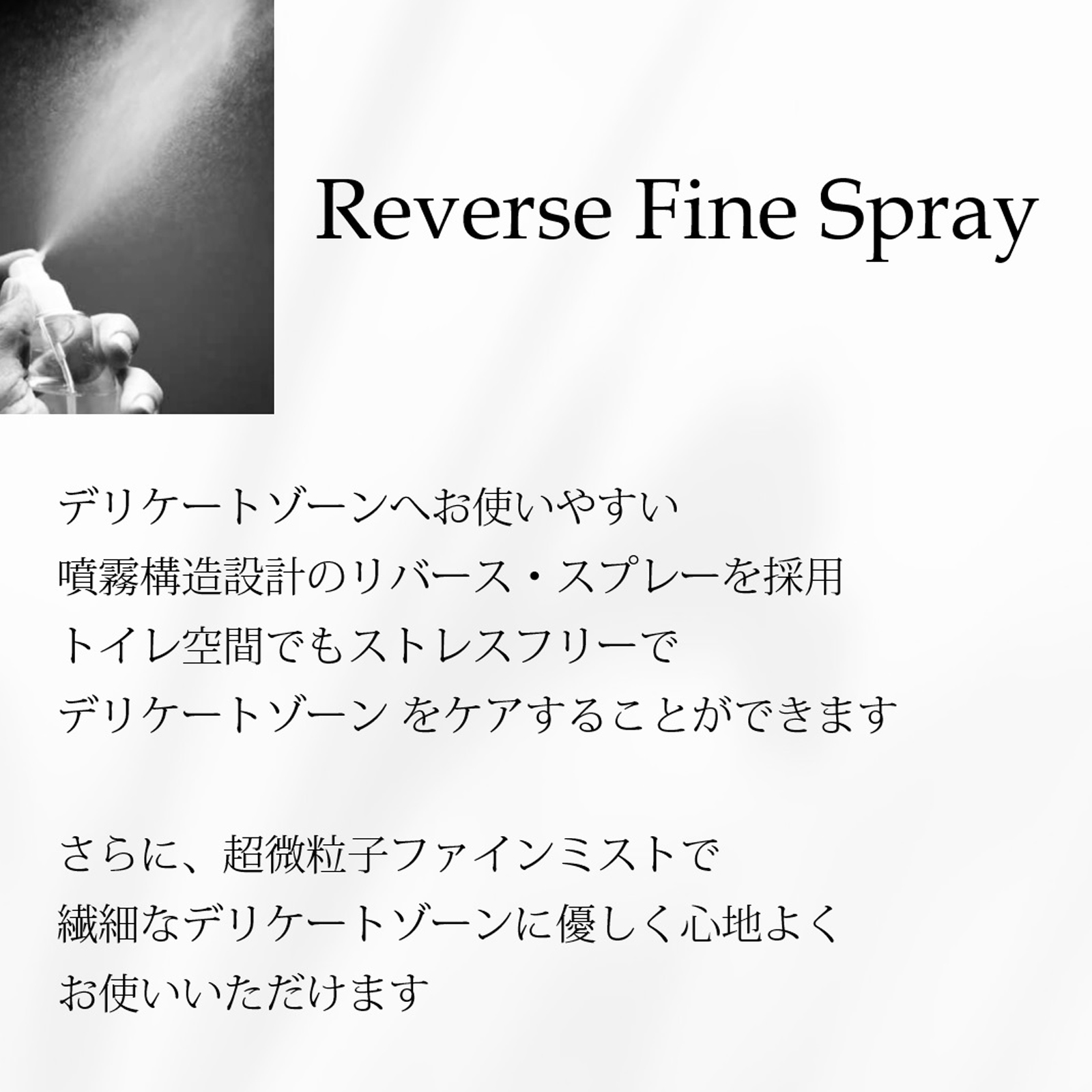デリケートゾーンへお使いやすい噴霧構造設計のリバース・スプレーを採用。トイレ空間でもストレスフリーでデリケートゾーン をケアすることができます。