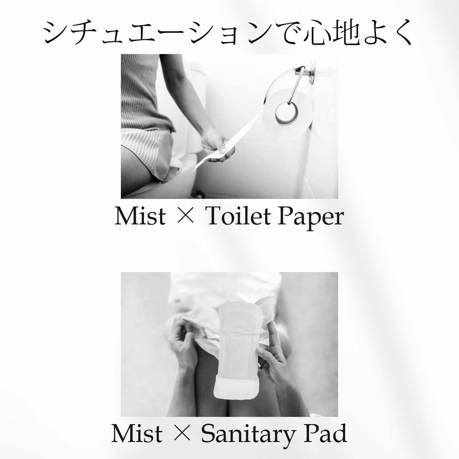 さらに、超微粒子ファインミストで、繊細なデリケートゾーンに優しく心地よくお使いいただけます。トイレットペーパーやサニタリーパッドに吹き付けて、気軽にデリケートゾーンのケアが可能です。