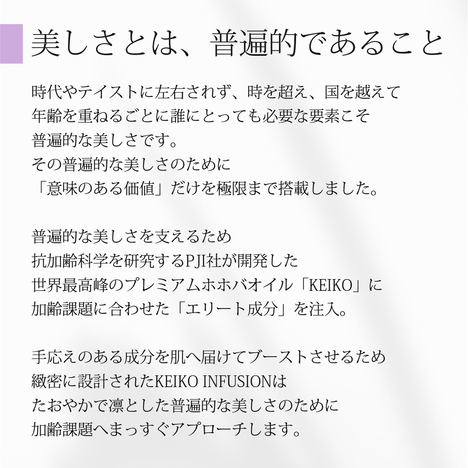 KEIKO INFUSIONはデリケートゾーンの加齢課題を追求し、加齢や生活習慣で失ったデーテルライン桿菌をブースト。