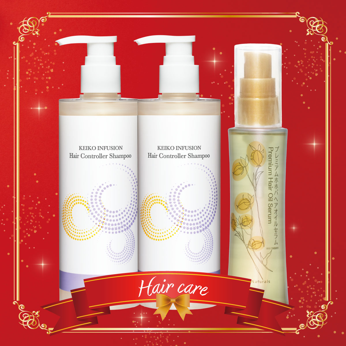 | 【内容量】 | ・KEIKO INFUSION ヘアコントローラー300mL×2本 ・ピュアジェイヘアオイルセラム 100mL×1本 |