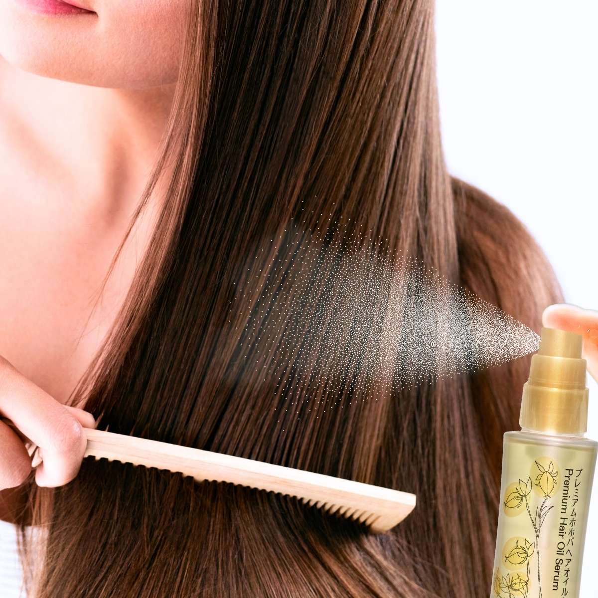 プレミアムホホバオイルの洗い流さないヘア美容液。米国医学博士が開発した「KEIKO種」だけを使用したプレミアムホホバオイルとヤシ油由来の新成分「ドデカン」のコンビがシリコンフリーでありながら、髪に驚くようなツヤを演出します。